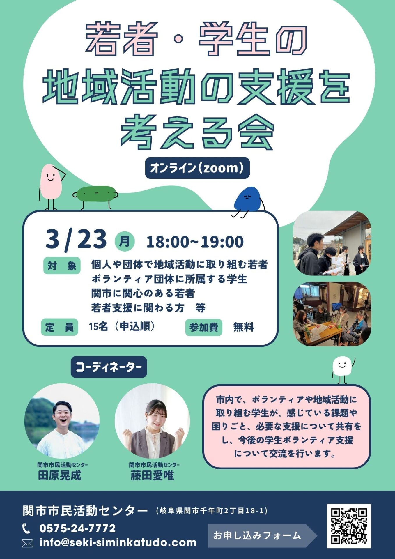 コーディネーター:田原 晃成(関市市民活動センター)、藤田 愛唯(関市市民活動センター)