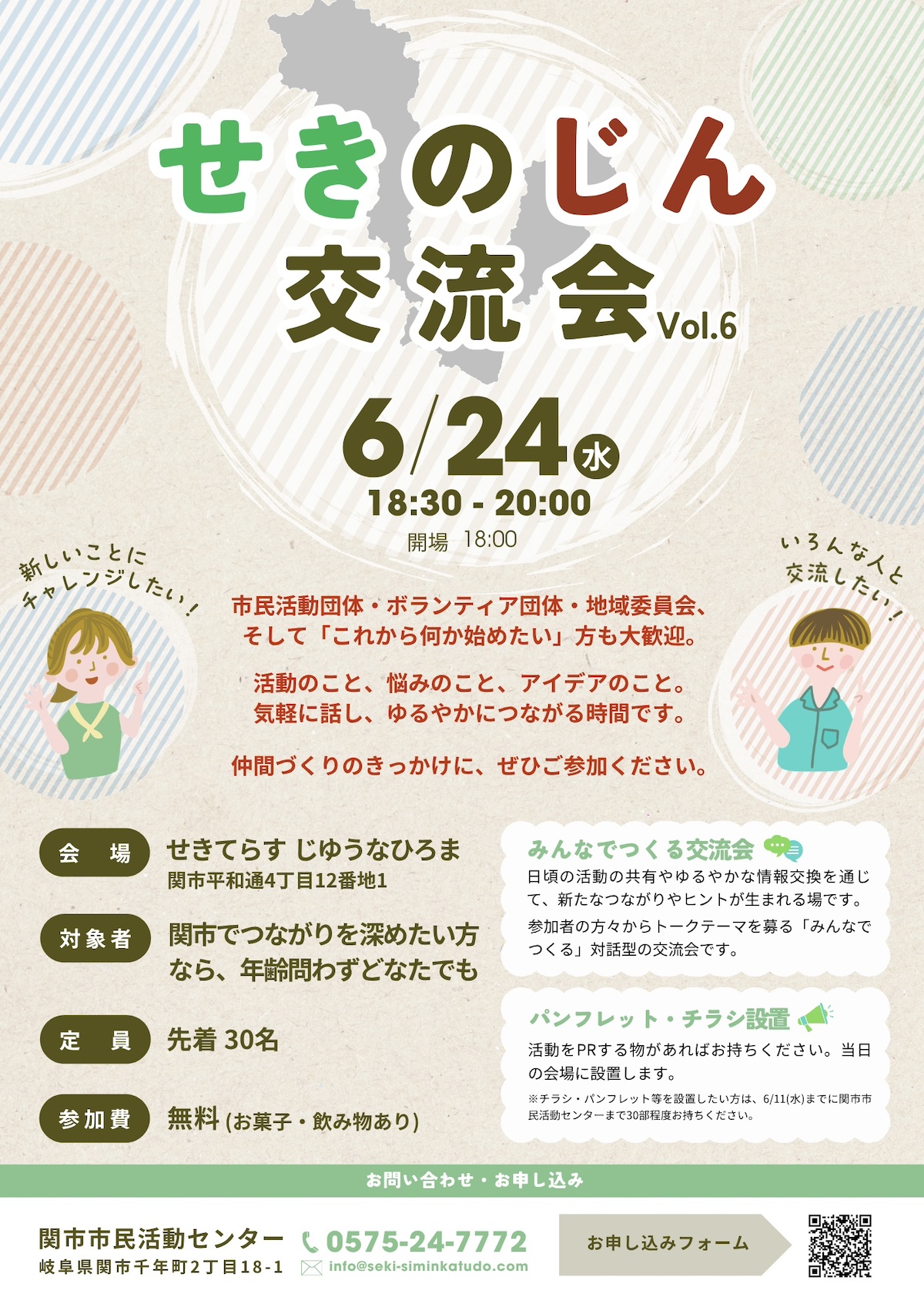 6月24日(水) 18:30〜20:00 「せきのじん交流会 Vol.6」