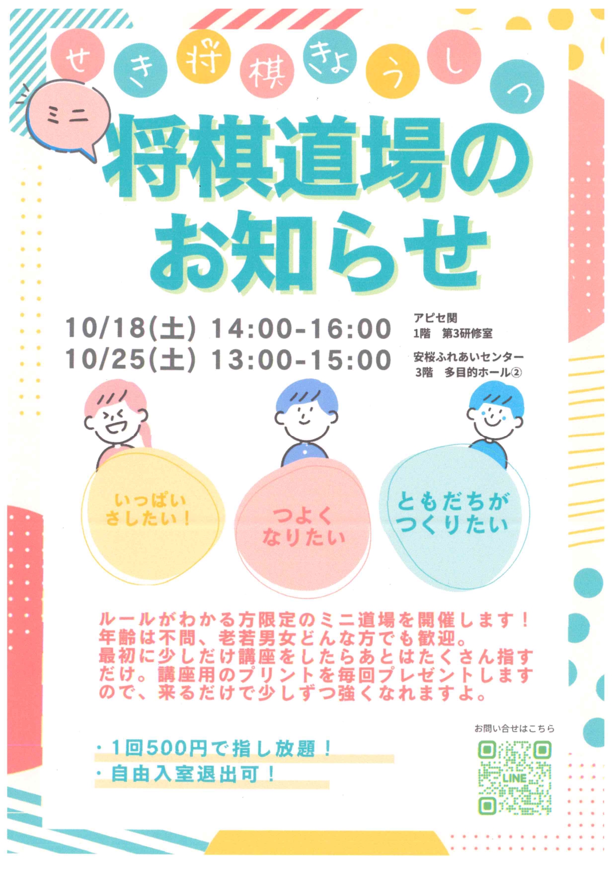 いっぱい指したい!強くなりたい!友達が作りたい!などの気持ちがある方是非行ってみませんか?