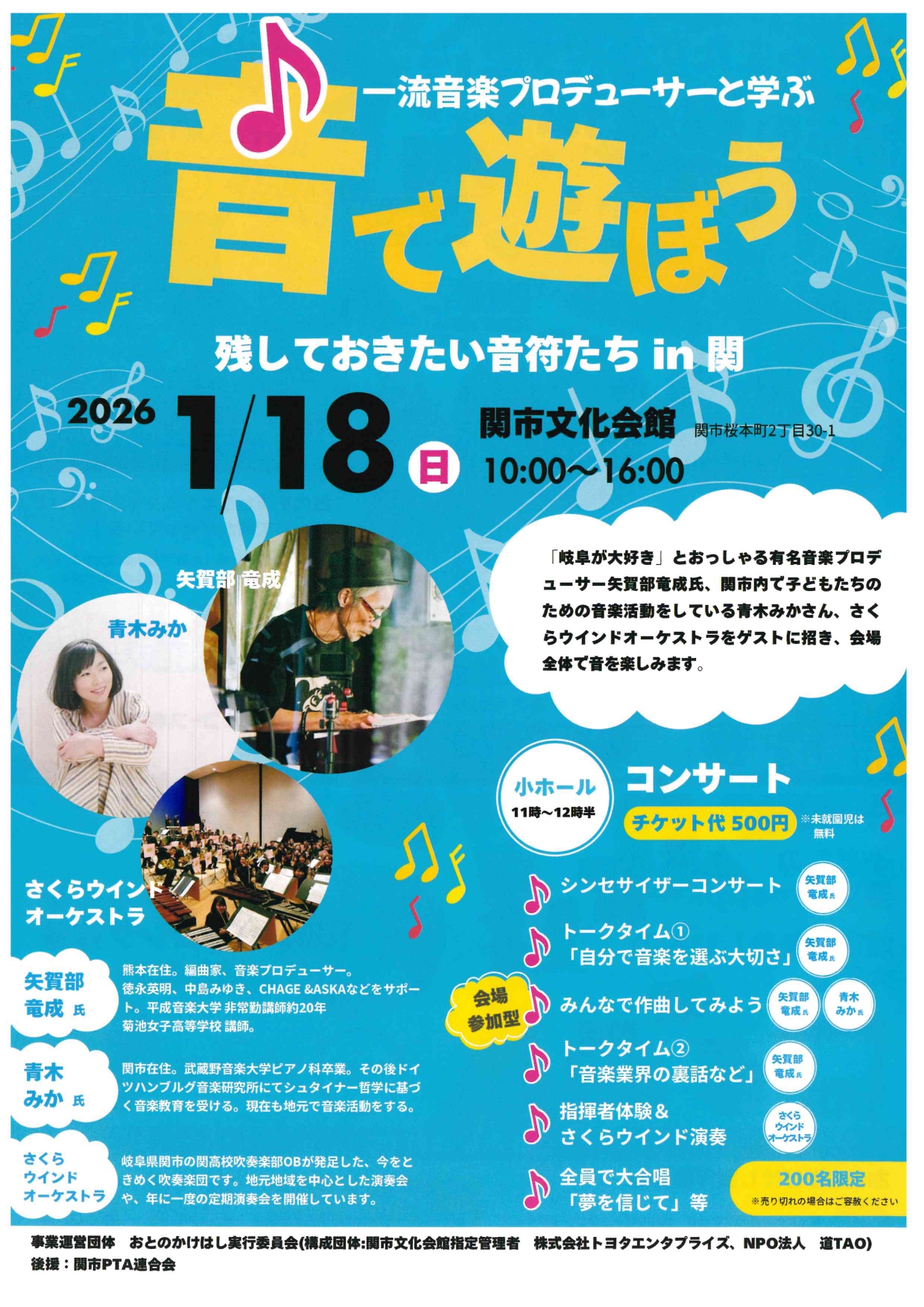 岐阜が大好きな有名音楽プロデューサーがゲストを招き、会場全体で音を楽しみます。