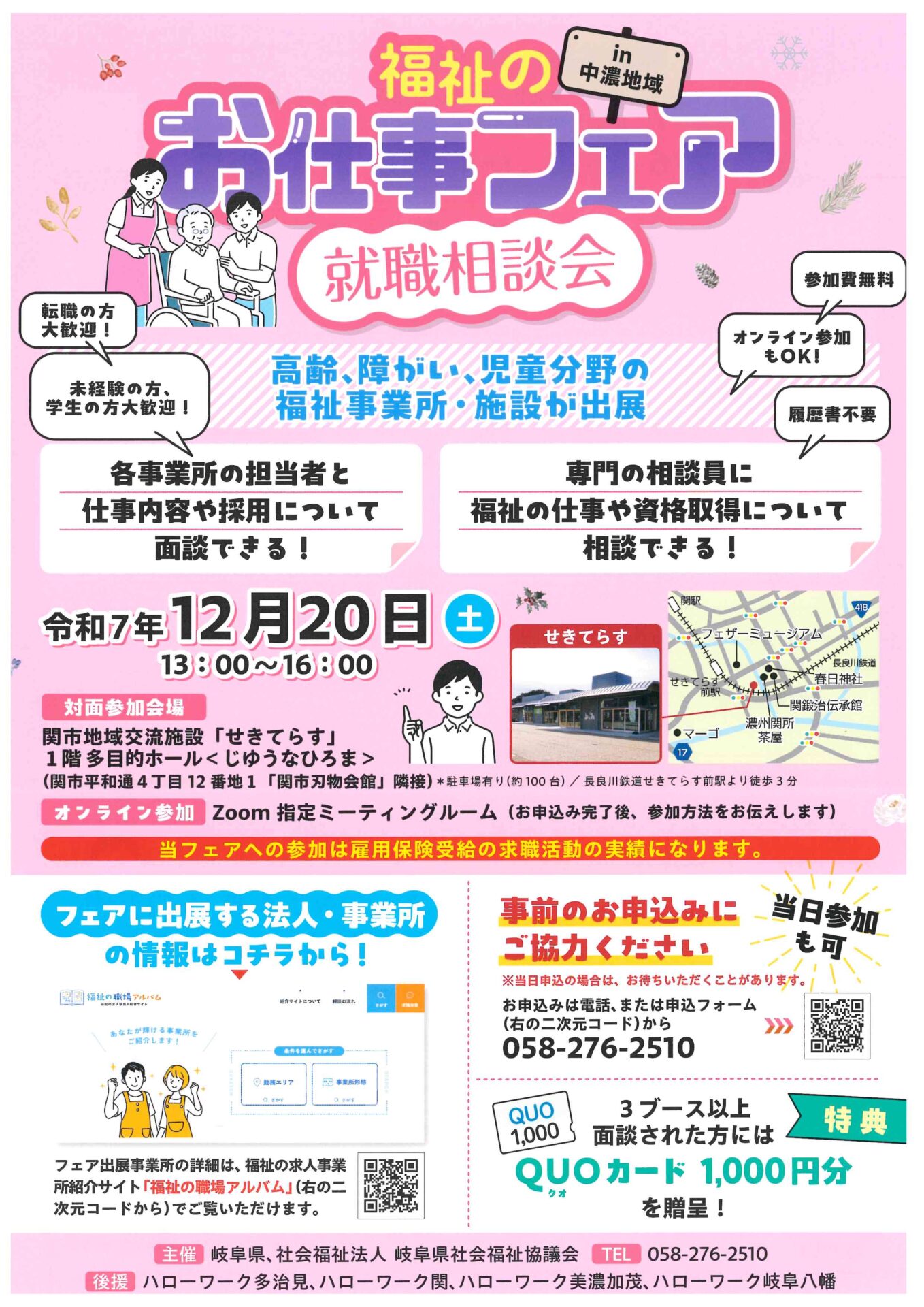 後援:ハローワーク多治見、ハローワーク関、ハローワーク美濃加茂、ハローワーク岐阜八幡