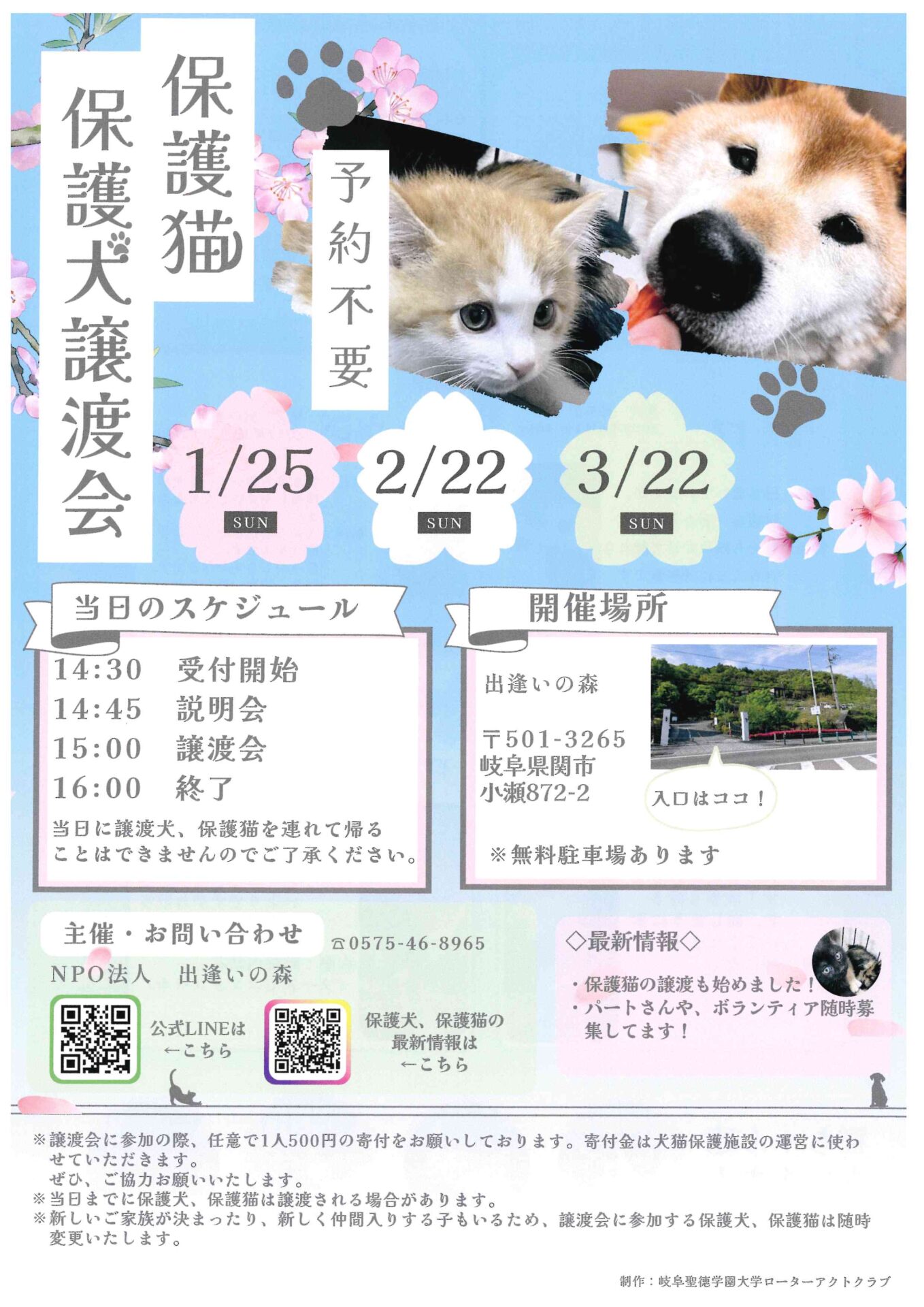 ※当日に譲渡犬・譲渡猫を連れて帰ることはできません。