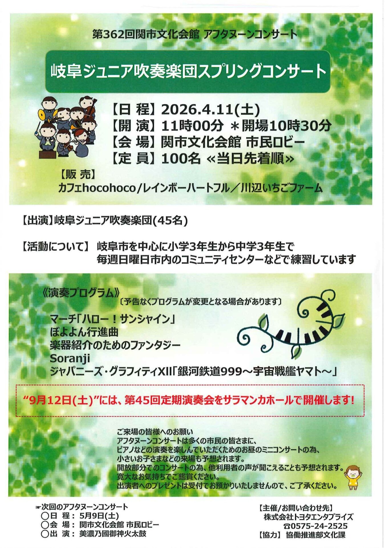 後援:関市 関市教育委員会 関市文化協会 岐阜県吹奏楽連盟 中日新聞社