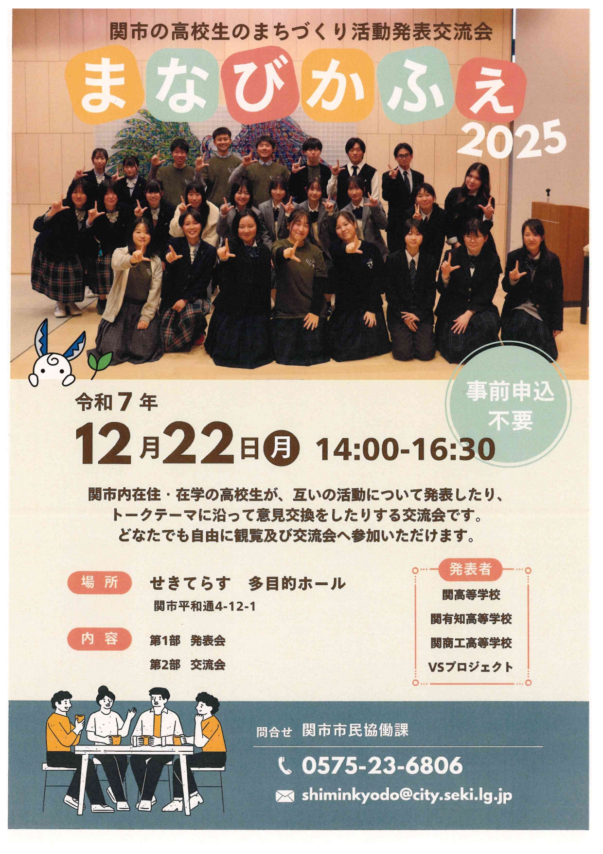 関高校、関有知高校、関商工、VSプロジェクトの活動発表の場です。発表の後、交流会も行われます。