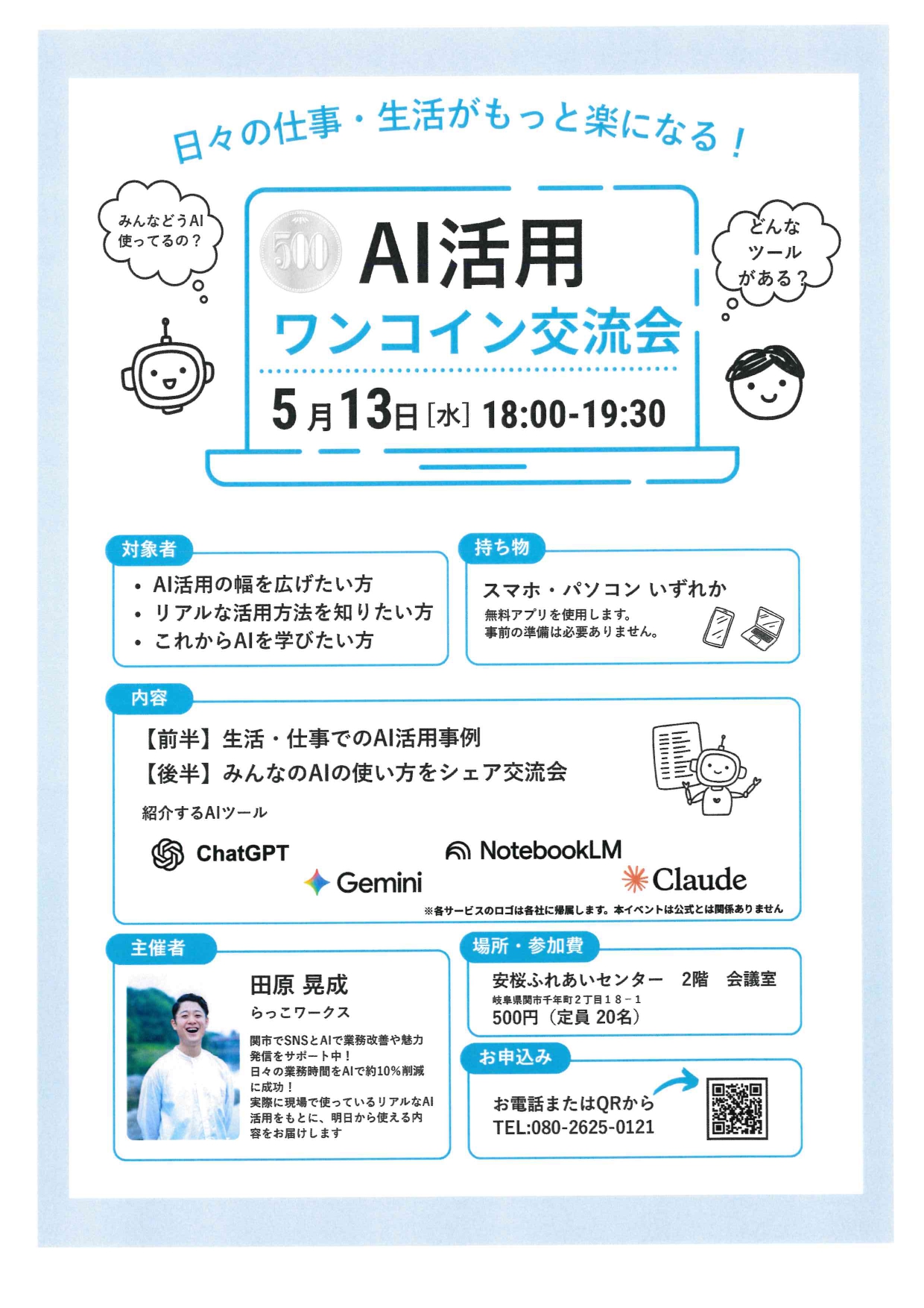 参加費:500円/1人(中学生以上)
