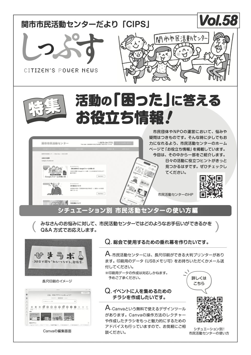 関市市民活動センターでは、年に2回程度、通信「しっぷす」を発行しています。