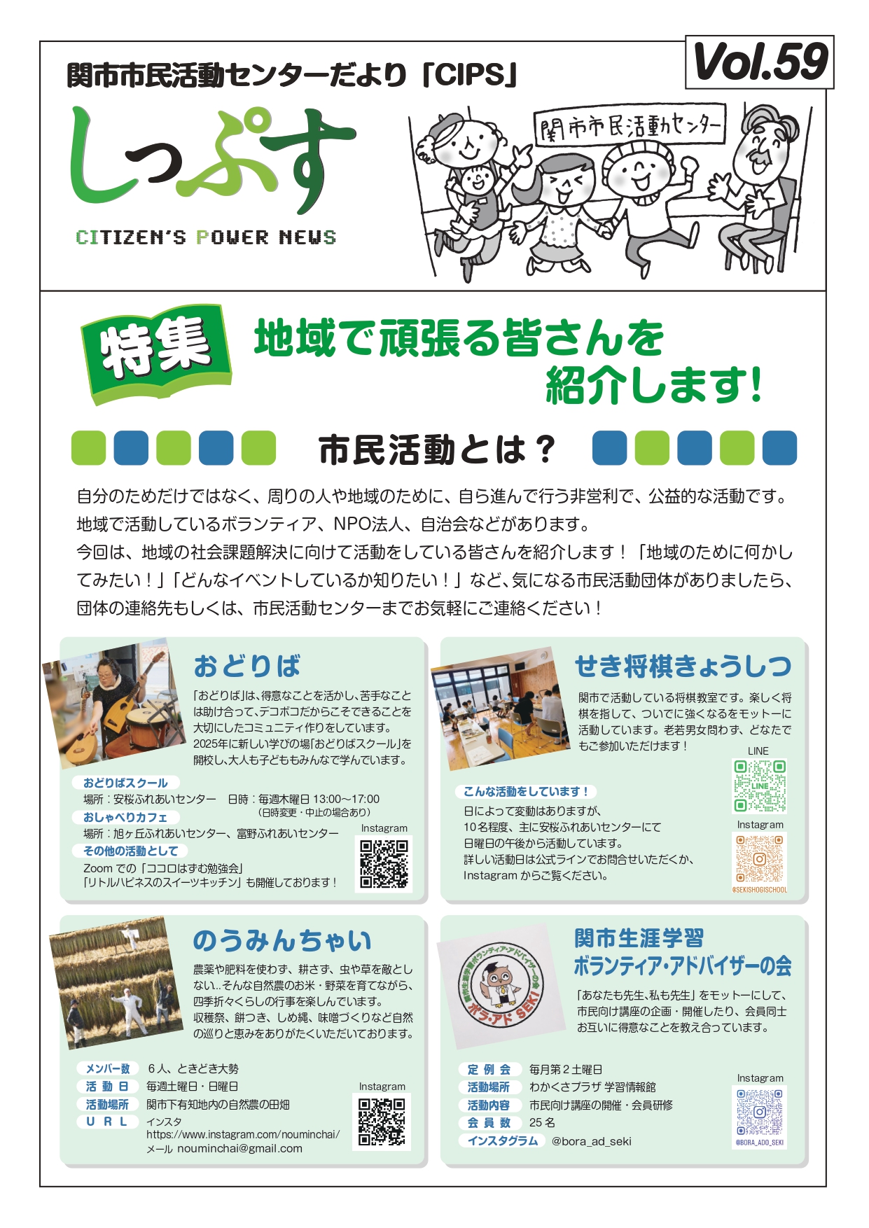関市市民活動センター通信「しっぷす」バックナンバーをご覧いただけます